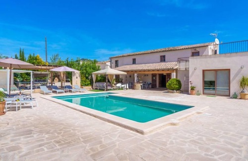 Moscari: Very large, very beautiful farm estate "Es Cos", 2 storeys, renovated, surrounded by trees. Outside the resort, 500 m from the centre of Moscari, in a quiet, sunny position, 2 km from the edge of the forest, 22 km from the sea, 22 km from the beach. Private: garden with lawn and wildlife garden, swimming pool angular (9 x 5 m, seasonal availability: 01.Jan. - 31.Dec.). Outdoor shower, table tennis, patio, arbour, pergola, garden furniture, barbecue. In the house: internet access, WiFi, table tennis, air conditioning, washing machine. Parking at the house on the premises. Grocery 900 m, supermarket 4 km, restaurant 900 m, bar, bakery 900 m, café, internet café, pedestrian zone, bicycle rental 4 km, pub garden 900 m, bus stop, sandy beach 22 km pebble beach 22 km, shingle beach 22 km. Sports harbour 25 km, marina 25 km, golf course (18 hole) 30 km, surf school 25 km, sailing school 40 km, tennis 4 km, riding stable 9 km, sports centre 9 km, cycle lane 3 km. Please note: suitable for families, suitable for seniors. Object suitable for 8 adults groups of teenagers on request only. Loading and unloading of baggage is possible at the holiday house. Main road close by.