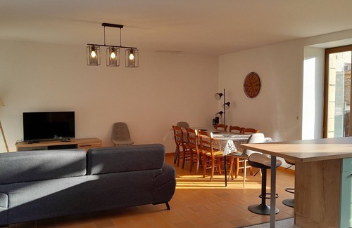 Vacation home in the Périgord Noir facing the chateau of Joséphine BAKER is located in Castelnaud-la-Chapelle. Vacation home in the Périgord Noir facing the chateau of Joséphine BAKER provides accommodation, featuring Fireplace/Heating, Internet, Laundry, among other amenities. This House features Fireplace/Heating, Internet, Laundry, to make your stay a comfortable one.