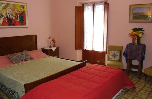 THE PRIVATE POOL, 10X5 meters, INAUGURATES ON 4 JULY 2017 in Podere Il Luogo, less than 2 km away. APARTMENT N. 2 ON THE 2nd FLOOR is renovated, 70 m2, comfortable furnishings, family furniture. From the bedroom overlooking the square, from the living room overlooking the side of the house, from the kitchen overlooking the green of the valley, from the attic gallery overlooking the entire Piazza Garibaldi. ROOMS: 1 living room with dining table, furniture, armchairs, TV. 1 kitchen with gas hob, oven, fridge, 1 large double bedroom with 3 bed, complete in walnut with double bed, wardrobe, dresser with drawers, armchairs. The gallery on the upper floor which is accessed with a rather steep wooden staircase where you can sit to enjoy the view of the square, 1 complete bathroom with short tub with seat and hook for the shower, sink, bidet, toilet, hairdryer. 4th folding bed to be placed in the living room. On the ground floor common room with washing machine, ironing board, iron..