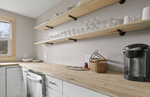 make a delicious feast in the modern yet charming kitchen, you’ll find everything you’ll need to craft a tasty meal, including an oven, a stove, a dishwasher, and a full-size fridge and freezer The kitchen is stocked with most items needed to prepare a great meal, just be sure to bring your seasonings and food of choice.