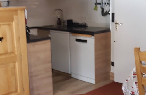 apartment of 27 m² for 4 people 2 rooms divisible by a movable partition separating the living area and the living room, creating two separate sleeping areas with each access to the entrance which déssert the bathroom, separate toilet and kitchen It has wardrobes, balconies and views of the mountains and forest, equipped with dishwasher, microwave, raclette, kettle, coffee maker, dishes, bedding, duvet / blanket, pillows, USB flat screen TV) .