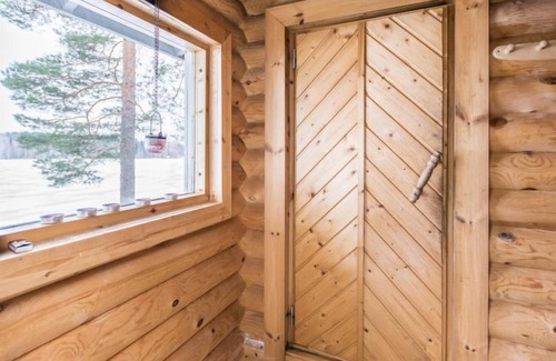 lakeshore sauna has been renewed (floor) may/2020 Fish smoking pot on the terrace. Steep slope to shore from cottage; steps down to jetty, lakeshore sauna and grill tepee. Lakeshore sauna has wood-fired stove, dressing room and porch, grill tepee has gas barbecue grill (grill may also be located in the terrace) , jetty has bench seat. Hot tub can be rented directly from the owner.