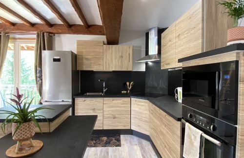 On the first floor of a large chalet in a natural, privileged setting in Cauterets, succumb to the charm of this vast, beautifully renovated 115m2 flat for 8 people.You'll love the peace and quiet, the space, the sunshine, the superb views of the surrounding mountains, the large panoramic balcony and the large shared garden.You'll appreciate its comforts: the comprehensive, high-quality equipment; the care taken with the decor and the charm of the wood; the 3 bedrooms and 2 bathrooms.You'll enjoy a vast 55m2 living room with Fully equipped kitchen (ceramic hob, fridge and freezer, microwave and traditional oven, dishwasher, filter and Senséo coffee maker, kettle, toaster, fondue and raclette appliances)- Large dining table for 8 people- Living room with sofa bed, electric fireplace, large TV screen with NETFLIX bouquet.- 25m2 master suite with private bathroom (bath shower), queen-size bed (160), large dressing room and flat-screen TV. Enjoy the stars from the French window opening onto the balcony.- Double bedroom with queen-size bed (160), dressing room and flat-screen TV.- Twin bedroom (80cm) with dressing area.- Bathroom with walk-in shower and double washbasin unit.- 2 separate WCs- 1 laundry room with washing machine and tumble dryer, ironing board and iron, cot and booster seat.Wifi available.You can enjoy a meal or simply take in the view from the large south-west-facing balcony.Located in a green, unspoilt setting, 2 km from the Lys cable car, you have 2 private parking spaces and shared access to the chalet's private grounds.A staircase leads directly from the balcony to the garden. Enjoy the BBQ, table tennis and table football available to you and your fellow guests.Bed linen, towels and end-of-stay cleaning are not included in the rental price, but are available at extra cost if required.Enjoy the authenticity, peace and quiet, views and sunshine of the Canceru district, at the entrance to Cauterets. Lys cable car and mini-market 2 km away. Hiking trails start from the chalet.Free CITYCAB shuttle bus service during the summer holidays and seasonal weekends from avenue du Dr Domer (400m)..
