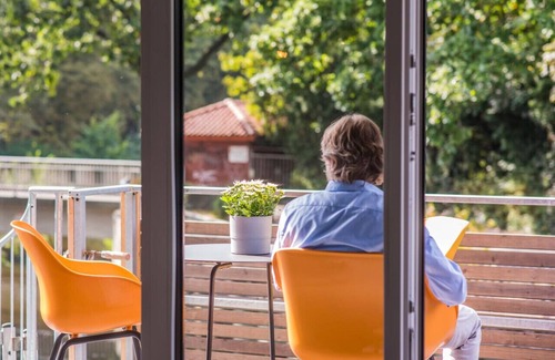 Vechte view studio, new building with balcony, WLAN & PP | Apartment in Nordhorn