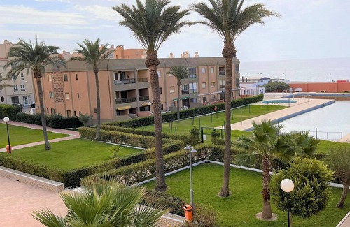 spectacular frontline beach apartment in retamar that has air conditioning in the living room You have access to the communal swimming pools (one for children, supervised by 2 lifeguards) and there is plenty to do in the area. Ideal for sun holidays with the family. The holiday home has a great location on the Spanish 'playa', 100 m from the bus stop so that you can easily go in all directions. For example, consider a trip to Almería, a 45-minute bus ride away, or keep it close to home and discover the beautiful Cabo de Gata natural park (200 m walk from the house). The apartment is very close to the leisure area with bars, restaurants, and nightclubs (Plaza del Mar). The holiday home offers its guests WiFi and a private kitchen so that you can independently prepare the most delicious dishes. You also have access to 2 tennis courts, a futsal court, and a basketball court.