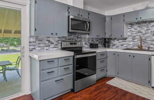 stay connected with smart tvs in every room, and unwind with your favorite shows and movies The fully equipped kitchen provides everything you need to prepare delicious meals or step outside and relax on the covered back patio with seating and a comfortable couch. The grass backyard is perfect for outdoor activities like bag toss games or Cornhole. You also have convenient side access to an open carport. Enjoy all of the comforts of a modern home, such as reliable, high-speed WiFi, laptop friendly workspaces, a fully equipped kitchen, HD Smart TV's , washer & dryer in-unit, and free parking. with pets allowed, this unique designed space is perfect for the whole family and extended stays are welcome!