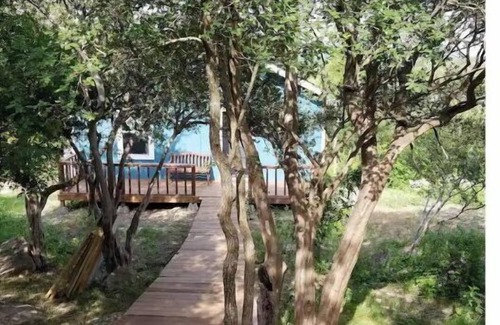 unique guest house that sits in a forest of persimmon and oak trees with a beautiful view of georgetown and southwestern university The house overlooks a green lush meadow with two ponds. We have flower gardens, paths that are all private with wildlife.