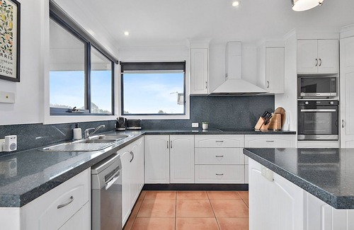 This modern beach house is the perfect spot to base yourself, for that well deserved getaway. The home offers much for every age. There are three bedrooms; Main with a queen bed & walk in robe, the second bedroom with queen bed & built in robe & the third bedroom with two sets of single bunk beds & built in robe. The spacious bathroom has a bath & walk in shower.