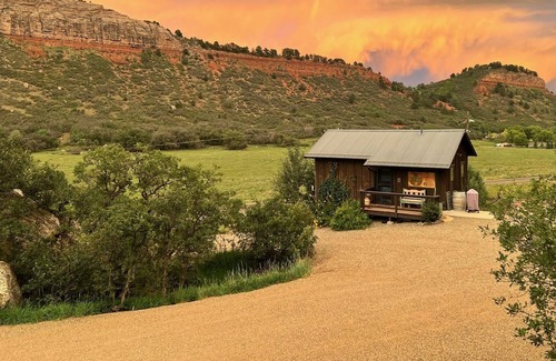 outside there is a seating area that invites you to enjoy the views and the peace & quiet It's not unusual to see elk, deer, bears, and coyote in the meadow. And if you're a bird-watcher you'll see hawks, vultures, and eagles soaring along the ridge lines to the east and west. A short hike takes you to an overlook of the Animas River and valley.