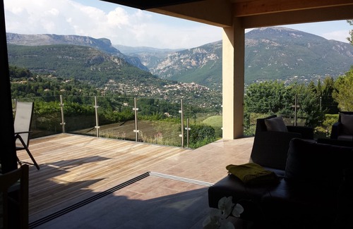 Views of mountains and sea, pool and large terraces is located in Chateauneuf-Grasse. Views of mountains and sea, pool and large terraces provides accommodation, featuring Child Friendly, TV, Balcony/Terrace, among other amenities. This House features Child Friendly, TV, Balcony/Terrace, to make your stay a comfortable one.