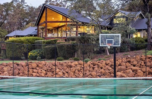 Tucked into five acres of tranquil bushland near Yallingup Siding, this spacious multi-level retreat with a main house and separate villa is perfect for families and groups. With a full-sized tennis court, basketball hoop, and plenty of room to relax, it’s made for shared moments. Enjoy the warmth of the fireplace, generous living spaces, and views stretching to Geographe Bay—just a ten-minute drive to beaches and wineries.