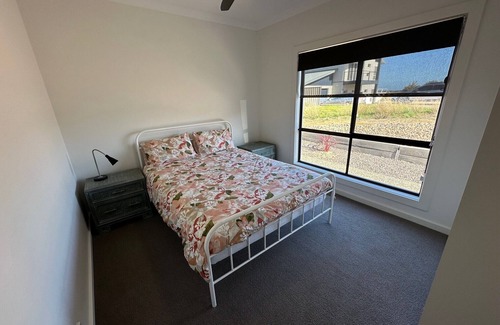 open plan living - kitchen with large fridge/freezer, gas stove top and electric oven, microwave, dishwasher, k-fee coffee pod machine (byo pods - aldi), kettle, toaster, island bench with 4 stools Dining area with 6 seater table/chairs, ceiling fan, sliding door leads out to rear yard. Living area with L shaped lounge, large Smart TV, Blue-ray player, ceiling fan, split system reverse cycle air-conditioner.