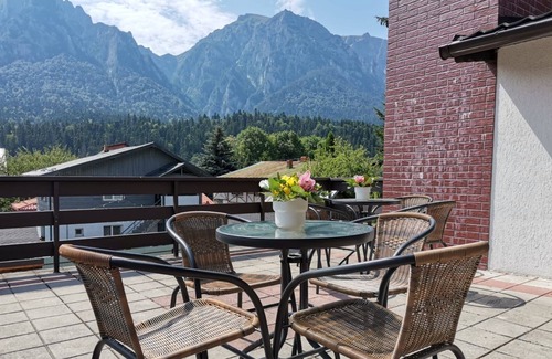 vila panduri 23 is nestled in a peaceful location, offering tranquility and privacy while still being just minutes away from local attractions Enjoy exquisite panoramic views of the Carpathian Mountains, including the iconic Hero's Cross on Caraiman Peak, which holds the world record as the tallest cross in the world. Explore nearby hiking trails, take in the fresh mountain air, or visit the famous Cantacuzino and Peles Castle and the charming nearby town of Sinaia. After a day of adventure, return to your private oasis to unwind and soak in the natural beauty that surrounds you.