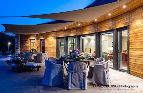 Villa Airone is a beautiful eco-sustainable property located between Pisa and Siena, entirely on one floor and built with a wooden supporting structure that enhances its natural and harmonious character. The property is immersed in a large private garden of approximately 4,000 square metres, landscaped with lawns and dotted with tall trees that provide shade and coolness during the summer months.