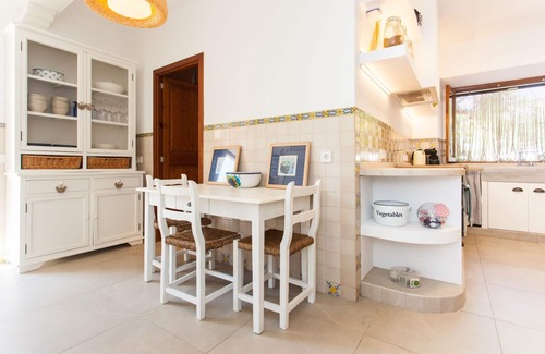 villa cabrera allows you to discover the best of the landscape and style of puerto colonia de sant jordi, in the south of mallorca with its exclusive views of the island of cabrera Located in Colonia de Sant Jordi, this property offers panoramic views of the Mediterranean and has a cozy design. The accommodation includes 6 bedrooms with a maximum capacity of 12 people, 5 bedrooms are located in the main house, and 1 bedroom in the guest annex. The terrace of the large living room of the villa offers sea views. In the garden area, its 11x4 pool is located, with its sun loungers, chillout, barbecue and shaded outdoor dining area at the top with the best views. The villa also has Wi-Fi connection, air conditioning in the guest annex and fans in the main house. The large living room opens onto the terrace and includes a large and comfortable armchair area with a casual atmosphere at one end and a dining area that seats 12 people on the other. It also has a fully equipped kitchen. In the main house you will find 1 bedroom bed 1'60, 1 bedroom with 1'80 breast, 1 bedroom with 2 beds of 1'35 each, 1 bedroom with 1 bunk bed and another bedroom located next to the kitchen with bunk bed and private bathroom. The main house has 2 full bathrooms with shower that share the other 4 bedrooms.In the guest annex, the bed is 2,00 and has a private bathroom, equipped kitchen and living room. The villa is facing the sea, just 2 minutes walk from the port and 10 minutes from the beach of Es Dolç.Supermarkets, restaurants, bakery and ice cream parlor are very close to the villa.See you soon..