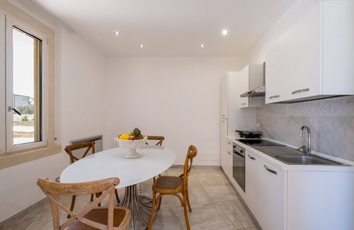 The villa 'Dimora Santi Medici 'is located in Uggiano La Chiesa and surrounded by the greenery of the Salento countryside, making it ideal for an unforgettable holiday with your loved ones. The 130 m² property consists of a living room, 2 well-equipped kitchens, 4 bedrooms and 2 bathrooms, as well as an additional toilet and, can therefore accommodate 8 people. Additional amenities include high-speed Wi-Fi (suitable for video calls), air conditioning, satellite television and a jacuzzi.