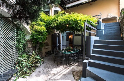 If you cross Gardone Alto Village, passing through Piazza Garibaldi, you will be caught by the charm of this tiny square surrounded by beautiful old houses decorated with colorful flowers. In this context is located “Villa Glicine”, a historical house that has been recently renovated by the owner, an architect that truly loves the Villa and reflects this feeling in every single detail. A few characteristics of this house would be enough to make you fall in love with it. First of all its position is very central, but at the same time privacy is guaranteed, indeed nobody from the outside can look into the courtyard and the windows placed towards the lake. Peace is also predominant as in front of the house you can only see a private park and, beyond it, the lake. The other strong point is the restoration that has been done in a modern and tasteful style but keeping at the same time the fascination of this old building or actually, I would say, highlighting it. Those who appreciate art might be fascinated by some pieces displayed in the House: statues, paintings, pieces of furniture as well as several pictures taken by the Photographer Guido Albi Marini (www.guidoalbimarini.com).