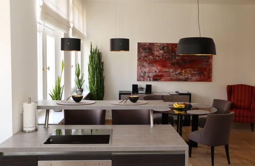 Downtown in the city, this beautiful and exclusively furnished 5-star-suite offers a great accomodation for business travelers as well as vacation leisure. Located in a pedestrian area, guests find many restaurants and shops, but still it is a quiet place to relax. All furniture is new and in a modern but timeless elegant style.