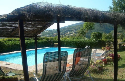 the swimming pool is 5 meters (16 feet) large by 10 meters (33 feet) long The area is equipped with a table, chairs, deck chairs and sun loungers. From the swimming pool you will enjoy a charming view of the valley and of the hills. You will share the pool with guests staying at another nearby apartment. The swimming pool is open from mid-May until the beginning of October.
