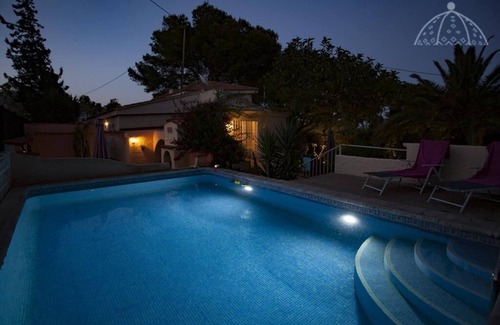 Lovely and romantic villa in Altea, on the Costa Blanca, Spain with private pool for 6 persons. The villa is situated in a coastal, wooded and residential area, at 1 km from the beach and at 1 km from Altea. The villa has 3 bedrooms (one bedroom is in a separate studio with bathroom) and 2 bathrooms, spread over 2 levels. The accommodation offers privacy and a garden with gravel and trees. Its comfort and the vicinity of the beach, places to shop, sports activities, places to go out, sights and culture make this a fine villa to celebrate your holidays with family or friends.