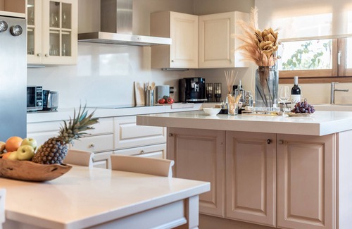 With a beautiful view of the sea, Villa Luxury With Pool And Seaview is located in the popular Can Pep Simo area. The three-storey property consists of a living room, a kitchen, 5 bedrooms, and 4 bathrooms, accommodating up to 10 people. Amenities also include Wi-Fi with a workspace for home office, several smart TVs, air conditioning, a washing machine, and a dryer.