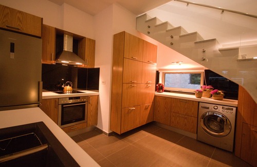 the kitchen is fully equipped with cooking utensils, dishwasher, oven, microwave, nespresso coffee maker and a cooker with ceramic hearth Finally, one of four bedrooms is on the villa's ground floor.