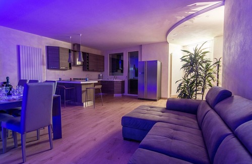 In the fantastic town of Olgiasca, on Lake Como, stands Villa Michelangelo, a modern jewel, full of style and comfort, capable of guaranteeing the customer an unforgettable holiday. You will be able to admire the most beautiful view of Lake Como. Unique in its kind, the splendid panoramic position allows you to reach the mountains, the lake and the center of Colico in just a few minutes. The Villa is independent and fenced, with a surface area of over 2000 m2, and is positioned on two floors, with 4 bedrooms and three bathrooms. Ideal for hosting groups or large families, giving the opportunity to spend time all together, in the vast spaces that the property offers, all surrounded by a green park full of flowers and plants typical of our lake. The upper floor is characterized by a large open space lounge, with a modern kitchen complete with all the latest generation appliances. A fabulous extra-large sofa allows you to enjoy the fantastic view of the lake from the panoramic window, with plays of light, which in the evening hours will make the view unique. A large table overlooks the panoramic window and will allow the whole group to spend unforgettable moments, lunches and dinners. A 65" multi-language Ultra HD 4K smartTV will complete your entertainment. The two bedrooms are respectively one double and one triple with single beds, with memory comfort mattresses. Bathroom complete with shower cubicle with chromotherapy. An illuminated marble staircase leads to the lower floor, where we find a double bedroom, two bathrooms, a triple bedroom and the laundry room. In the fourth bedroom there is a double bed and a single bed, with an independent internal bathroom, for those who prefer maximum privacy. A cellar with an exposed stone wall can give life to romantic candlelit dinners. Outside, the villa is equipped with a gazebo with exposed wood, where it will be possible to spend fantastic evenings, cheered by the view of the lake and the lake breeze. For your entertainment, five-a-side football and table tennis are at your disposal. At your disposal are the fiber wi-fi service and independent secure parking inside the villa for 3 cars..
