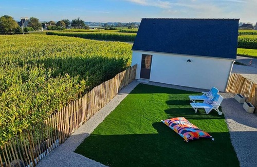 vous trouverez à la villa noblessa le calme, la tranquillité, une vue dégagée sur la campagne donnant sur la baie de goulven qui se situe à 300 m: accès privilégié à des kilomètres de plages de sable fin et à un des deux centres nautiques de la commune Les premiers commerces ne sont qu’à 300 m au centre de Plounéour-Trez.