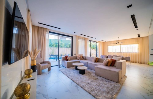 This 5 Bedrooms Villa provides accommodation with Child Friendly, Internet, Laundry, for your convenience. This Villa features many amenities for guests who want to stay for a few days, a weekend or probably a longer vacation with family, friends or group. This Villa is less than 3 km from El Aggada, and gives visitors the opportunity to explore it. The rental Villa has 5 Bedrooms and 4 Bathrooms to make you feel right at home.