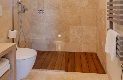 four bedrooms, all en-suite, and spacious living areas, extending to the veranda which descends to the wooden decking and the infinity pool is the perfect setting for relaxing in style and holidaying in luxury