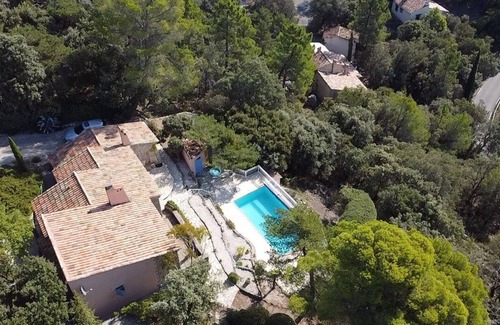 the south-facing terraces and swimming pool (4x9m) offer an exceptional view of the maures massif and, in the distance on a clear day, the waters of the gulf of saint-tropez