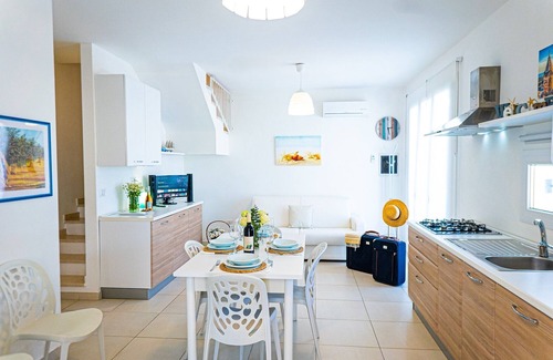 located just 900 meters from the crystal clear sea of torre lapillo, one of the ten most beautiful beaches in the world, a few kilometers from the typical tourist town of porto cesareo with its marvelous marine protected areas and very close to the white sand dunes of the turquoise sea of punta prosciutto, also well connected to reach the airport, the station, the port and the most important cities and surrounding tourist destinations