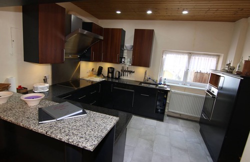 the kitchen is fully equipped with dishes, cookware, cutlery and kitchenware for 9 people WLAN 16 MBit. SATELLITE TV.