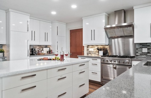 designed for culinary aficionados, the gourmet kitchen boasts high-end appliances, including a le cornue gas range that’s sure to delight even the most discerning chefs The kitchen is fully stocked with everything you need to host an unforgettable gathering.
