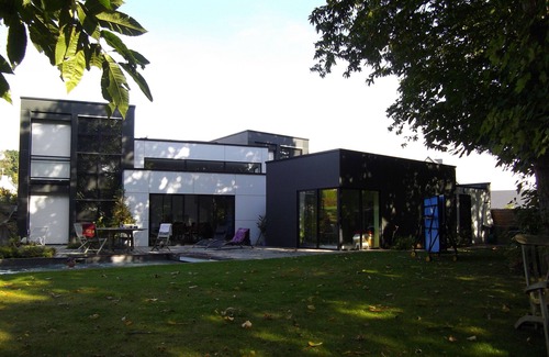 on the edge of the wood, on a small valley with stream, original architect's villa of 200 m2 with heated swimming pool (from the beginning of may to the end of october) balneo, gym (heliptical bike and rowing machine)