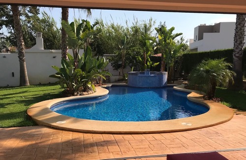 Single storey villa of 100 m2 on 880 m of individual land, 200m from a magnificent sandy beach, very little frequented even in the middle of August because there is no construction by the sea. The beach is protected by dunes. The villa is fully equipped, American kitchen, with oven, microwave, dishwasher, espresso machine, American fridge, large LED TV, satellite channel, wifi. Large living room with fireplace, 1 bedroom with 180 X 200 bed and very comfortable high-end bedding (special fragile back) 1 other bedroom with double bed + 1 single bed and an electric inflatable double bed. and of course a superb private swimming pool lit in the evening, with sun loungers, barbecue, bread oven and pizza, 2 terraces: in front and behind, you can enjoy the sun all day. nothing is missing you are 1 hour from Valencia airport, a car is recommended, in order to make the most of the region. If you are sporty and love cycling, you have wonderful backcountry trips, whether by mountain bike or road bike. At the end of the beach you have a small marina with a beautiful restaurant which prepares succulent paellas. Please note the price is different depending on the dates, especially July and August, enter your dates on the calendar to find out the exact price. Remember to book early because the villa is very popular..