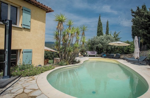 this pretty bastide features a private swimming pool, lovely views, air conditioning and a lovely enclosed garden You'll start your days with an invigorating dip in the pool, before taking a seat on the terrace with fresh croissants and a cup of coffee. The villa has a modern kitchen and the master bedroom has an en suite bathroom with bubble bath. enjoy the panoramic views of the village and the hills!