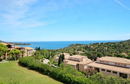 - Dans un cadre d'exception, Vue mer panoramique à Agay Côte d'Azur, Village Vacances Cap Esterel, 2 chambres, avec jardin, golf, climatisation, Wifi, 5 piscines