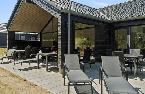 This holiday home in Fjellerup Feriecenter is ideal for large families or groups of friends, with space for up to 16 people. It features six spacious bedrooms and two cosy lofts perfect for kids. The private pool area offers a swimming pool, water slide, whirlpool, and sauna for relaxation. The heart of the home is a large common area with an open kitchen and a long dining table, perfect for gatherings. For entertainment, there\'s an activity room with table tennis, billiards, table football, darts, and a bar. Outdoors, a partially covered terrace with garden furniture and a barbecue is ideal for enjoying warm summer evenings. This holiday home offers much more than just accommodation – it\'s an experience..