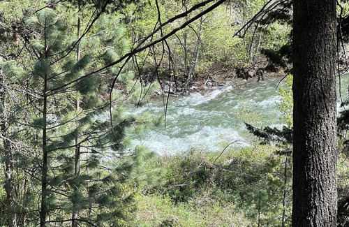 the main attraction from your cabin will definitely be the river, which is usually crystal clear and beautiful in color Collapsable REI river chairs are provided for the enjoyment of our private beach and property. In early spring you can watch rafters and kayakers fight the rapids from the comfort of your deck. In late summer the river is perfect for soaking your feet and cooling off. We also have several picnic tables around our property for enjoying homecooked meals while taking in views and sounds of the river.
