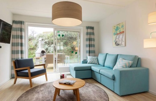 Zandvoort 10 km from Haarlem: Large, child friendly resort "Park Zandvoort". Outside the resort, 1 km from the centre of Zandvoort, from the sea, 500 m from the beach, road to cross. For shared use: indoor pool (seasonal availability: 01.Jan. - 31.Dec.). Shower/WC in the pool area, children's pool, slide, table tennis, children's playground, petting farm. In the complex: reception, restaurant, bar, WiFi, sauna, bowling, table tennis (all extra), billiard table, playroom, table football, trampoline, shopping facilities, bicycle rental. On request (extra). Central parking spaces. E-charging station. Supermarket 50 m, bus stop "Vondellaan" 200 m, railway station "Zandvoort aan Zee" 1 km. Minigolf 50 m. Nearby attractions: Circuit Zandvoort 1 km, Keukenhof 19 km, Centrum Amsterdam 40 km, Mauritshuis Den Haag 46 km. Please note: car-free holiday complex. Entertainment. Suitable for families. The owner does not accept any youth groups. The complex has night security. The photograph shows a typical example. All houses/apartments are individually designed/furnished. Longstays (21 days or more) and workers are on request.