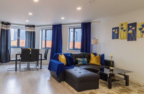 Stylishly luxury two bedroom Apartment in the heart of Bedford Town Centre within walking distance to shops, restaurants, Cafes and pubs. This is perfect for Professionals or Families looking for comfortable stays while travelling for work or Holiday in Bedford. The Apartment is furnished to a very high standard providing maximum comfort for our guests and comes with free Gym & Yoga Studio, free unlimited fibre optic wifi internet, smart TV with Netflix and has FREE Parking..