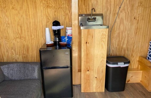 escape to the serene beauty of the vista of maine and experience the magic of the bobcat den Nestled amidst lush forests and perched on the edge of a picturesque vista, this charming cabin is your ticket to a tranquil retreat. This unit has a detached shared bathhouse just steps away. With full shower rooms, restrooms, and laundry facility. All in a serene setting in the Vineyards..