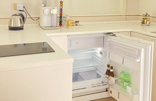 while you're here, you can enjoy all the comforts of home and more, including a jetted bathtub and free wifi, as well as a bidet and air conditioning Other amenities include towels, a travel crib, an ironing board, and soap.
