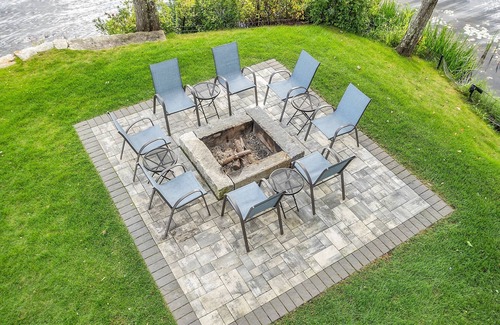 outside space- patio, small sandy beach, large dock, kayaks, paddle boards, fire pit, grill, outdoor shower
