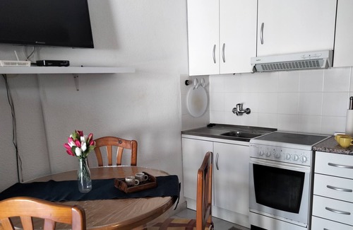 downstairs; it has a living - dining room, with fireplace and kitchen equipped with all appliances and kitchen utensils, such as toaster, kettle, coffee maker, etc a room with a double bed, a bathroom and an interior patio with washing machine