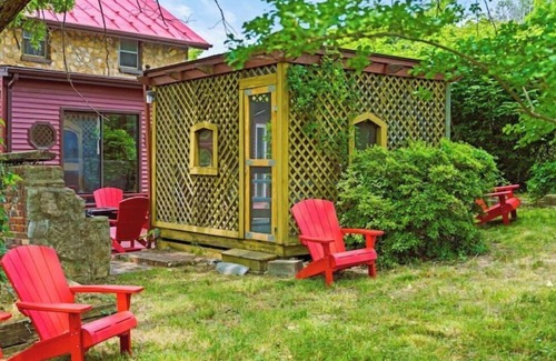 this is a unique property with lots of charm! it is a historic home with a cabin/victorian home feel It has many hang out spots both inside & out. very spacious! catch up with friends/family on the glider under the pergola, enjoy bird watching from the large front porch, read a book in the sunroom, roast s’mores by the fire pit, relax in the hammock, have a picnic dinner in the gazebo, or reconnect over dinner in the dining room that seats your whole crew! many places to spread out here!