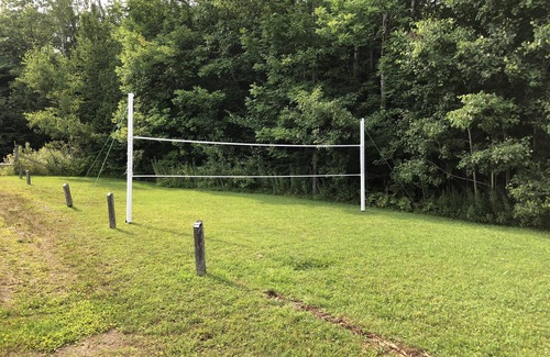 located on 8 acres, on the property you will find lots to do, including volleyball, multiple beautiful trails, fire pits, picnic tables, lounging/ tanning chairs, mini golf, tetherball and more!