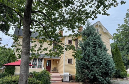 The Thomas Jarrett House circa 1894 has been meticulously restored with all original hardwood floors, woodwork and windows. The Home is listed on the National Historic Register. This 4 bedroom 3 full bath dream home features a professional style gas range, 2 ovens, stainless appliances, an espresso and cappuccino maker and more. it is truly a chefs kitchen. This 2 story home has wonderful outdoor living areas; 2 downstairs covered porches, a beautiful brick patio and 1 upper veranda. It also has a large fully fenced yard. This home has 6 fireplaces, 10 foot ceilings on main level 9 foot on 2nd, claw foot tubs, flatscreens, wifi and more.