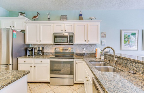 Seaside bliss awaits at this 4-bedroom, 4.5-bath vacation rental in North Myrtle Beach! With a modern kitchen, 4 en-suite bathrooms, and an ocean view from the porch, this spacious condo is ideal for large families and groups looking to indulge in comfort and convenience. you'll be just steps away from sandy shores, and you can enjoy easy access to dining, shopping, and golf! after a day in the sun, be sure to check out the cherry grove pier just down the road!